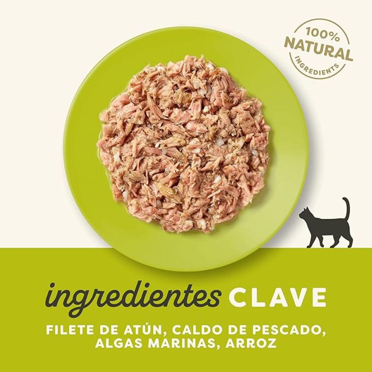 • 🐟Filete de atún 70% con algas 5% en caldo natural: proteína magra con un plus mineral.