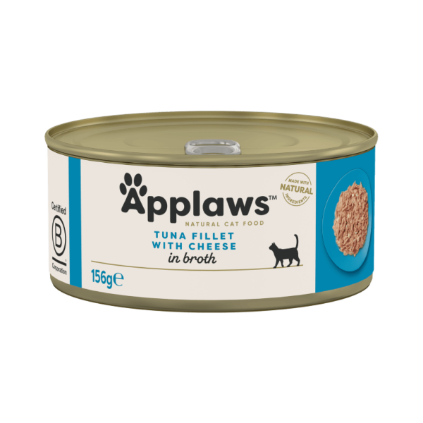 Comida Húmeda Natural para Gatos Applaws – Filete de Atún con Queso en Caldo Natural, Lata 156 g