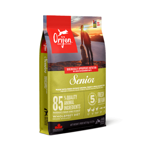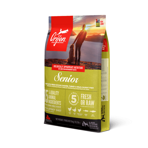 El pienso Orijen Senior es un alimento seco de alta calidad diseñado para nutrir a tu perro con una receta rica en proteínas, inspirada en la dieta natural de los carnívoros.
